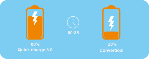 Quick charge is a Qualcomm technology in many Android devices designed to draw much more power than previous stnadard protocols,without sacrificing the battery’s lifespan.Compatible devices charge from 0 to 80% in 35 minutes with a Quick charge-enabled charger. |